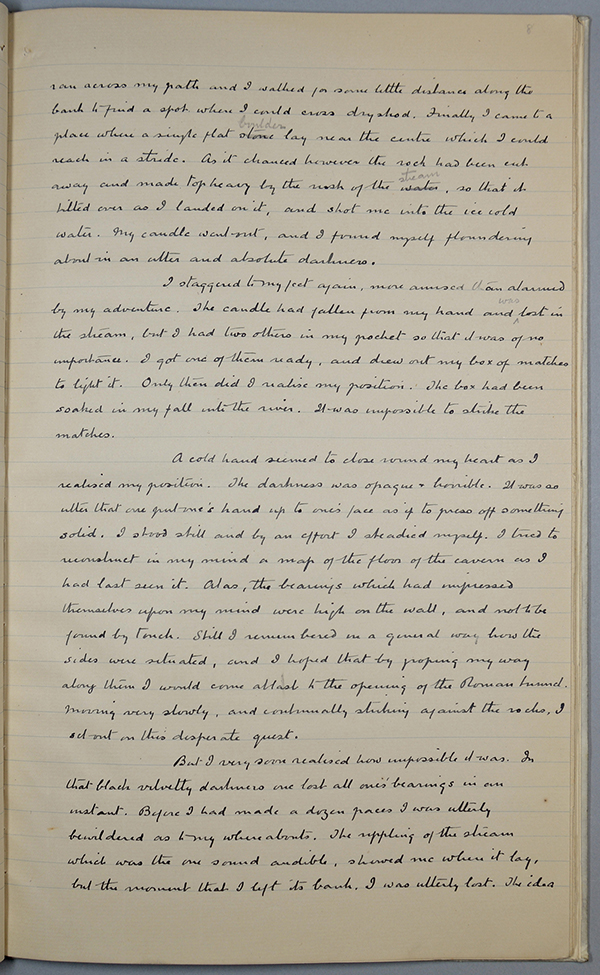 The autograph manuscript of “The Terror of Blue John Gap” reproduced above is courtesy of Dartmouth College Library, Rauner Special Collections, MS-93: Sir Arthur Conan Doyle.